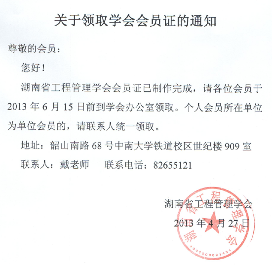 关于领取学会会员证的通知