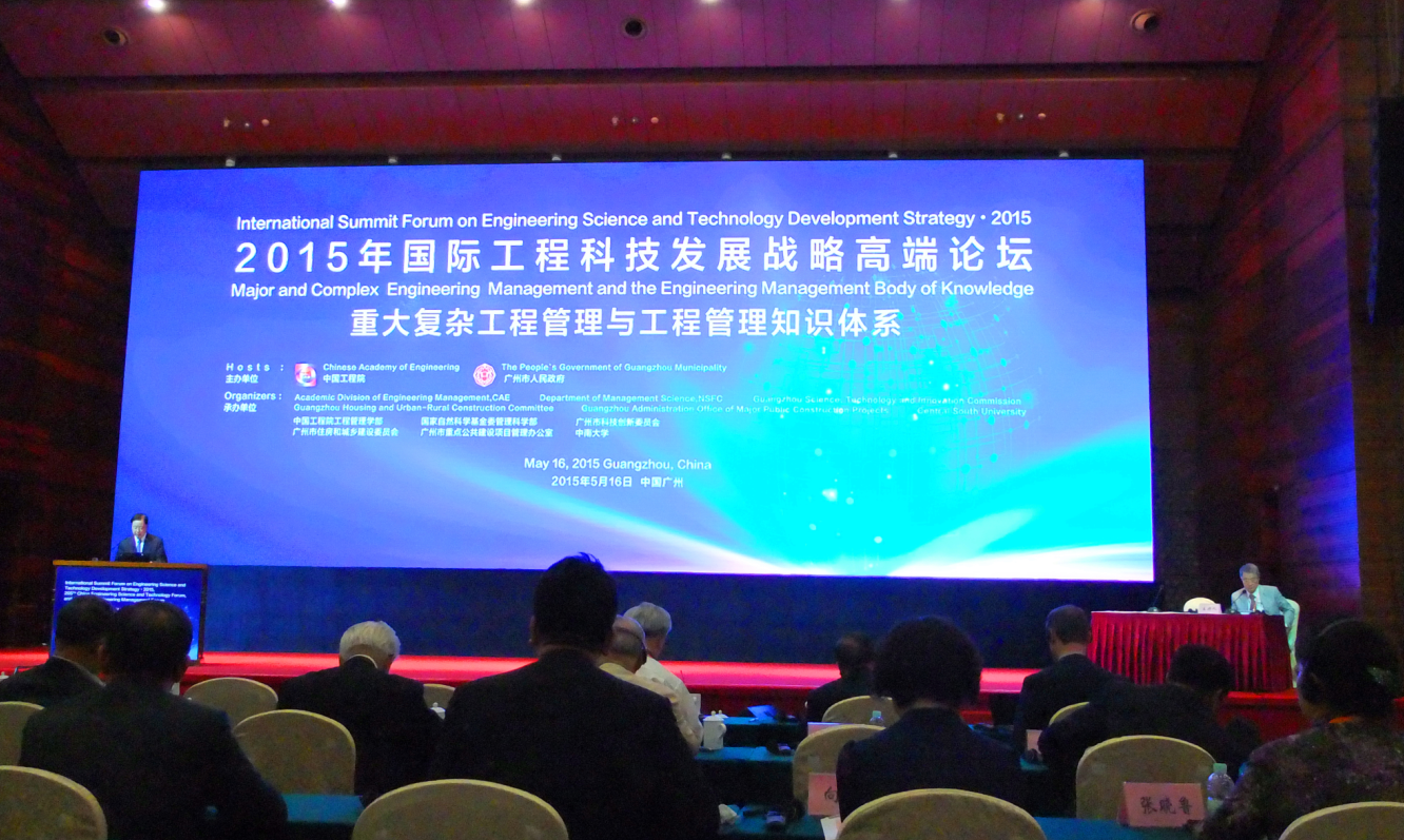 2015年国际工程科技发展战略高端论坛、第205场中国工程科技论坛暨第九届中国工程管理论坛于516-17日在广州白云国际会议中心召开,论坛以“重大复杂工程管理与工程管理知识体系”和“绿色城市建设与污染防治”为主题。本届论坛由中国工程院与广州市人民政府共同主办,中国工程院工程管理学部、国家自然科学基金委员会管理科学部、广州市科技创新委员会、广州市住房和城乡建设委员会、广州市重点公共建设项目管理办公室、中南大学共同承办。论坛收到论文400余篇,从中精选365篇优秀论文收录论坛论文集,并推出特刊 Frontiers of Engineering Management 。湖南省工程管理学会组织了20多名会员出席本次论坛。