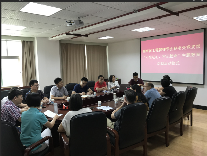 为贯彻党中央十九大会议精神,落实湖南省科协“不忘初心、牢记使命”主题教育活动任务的具体要求,湖南省工程管理学会党支部在认真组织开展一系列做好宣传教育、学习培训工作。2019年9月25日下午,学会党支部“不忘初心,牢记使命”主题教育会系列活动启动仪式在中南大学铁道学院世纪楼学会办公室成功启动。会议由湖南省工程管理学会秘书长兼秘书处党支部书记陈辉华主持,湖南省科协派驻第一书记周辉军、湖南省工程管理学会副理事长王孟钧教授、湖南大学、中国建筑第五工程局有限公司、湖南建工集团有限公司、湖南省建筑设计院等单位的学会副秘书长共15人参加会议。
