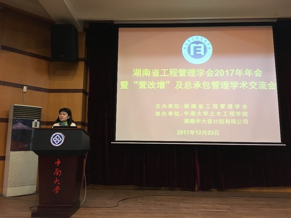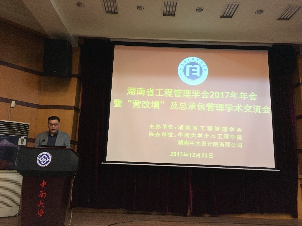 2017年12月23日,由湖南省工程管理学会主办、中南大学土木工程学院和湖南中大设计院有限公司协办的湖南省工程管理学会2017年年会暨“营改增”及总承包管理学术交流会在中南大学铁道校区国际报告厅召开,170余名会员参加本次会议。