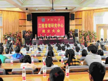 2011年11月12日下午,中南大学工程管理研究中心成立大会暨揭牌仪式在铁道校区国际报告厅举行。中国工程院院士孙永福、中南大学党委副书记郭乃正、原中南大学党委副书记周庆柱、神华集团有限责任公司副总经理薛继连、朔黄铁路发展有限责任公司常务副总经理贾晋中、湖南省建筑工程集团总公司副总经理刘少兵、中南大学铁道校区管委会主任田乃松、科技处副处长李昌友、土木工程学院院长余志武及在校院领导出席了本次会议。会议由中南大学土木工程学院党委书记黄建陵主持。